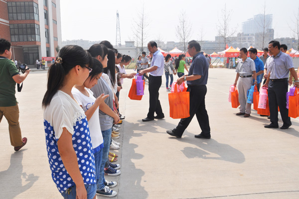 9月14日上午11时,河南科技学院校长助理、新科学院院长梅宪宾教授,院党委书记旦勇刚,副书记牛玉、冀红举,副院长张传来、张涛来到12号教学楼前广场,亲手把“爱心大礼包”送到贫困新生手中,表达了我院对经济困难新生的悉心关怀和真情帮助。