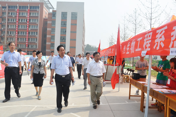 14日上午10时许,河南科技学院校领导牛书成、王清连、张玉珍、王文鹏、刘兴友、冯启高、王舜书在校党委办公室、校长办公室、党委宣传部、教务处、后勤管理处、保卫处、后勤服务集团等相关部门负责人的陪同下莅临我院迎新现场视察指导迎新工作。我院领导梅宪宾、旦勇刚、牛玉、张传来、冀红举、张涛一起陪同视察。