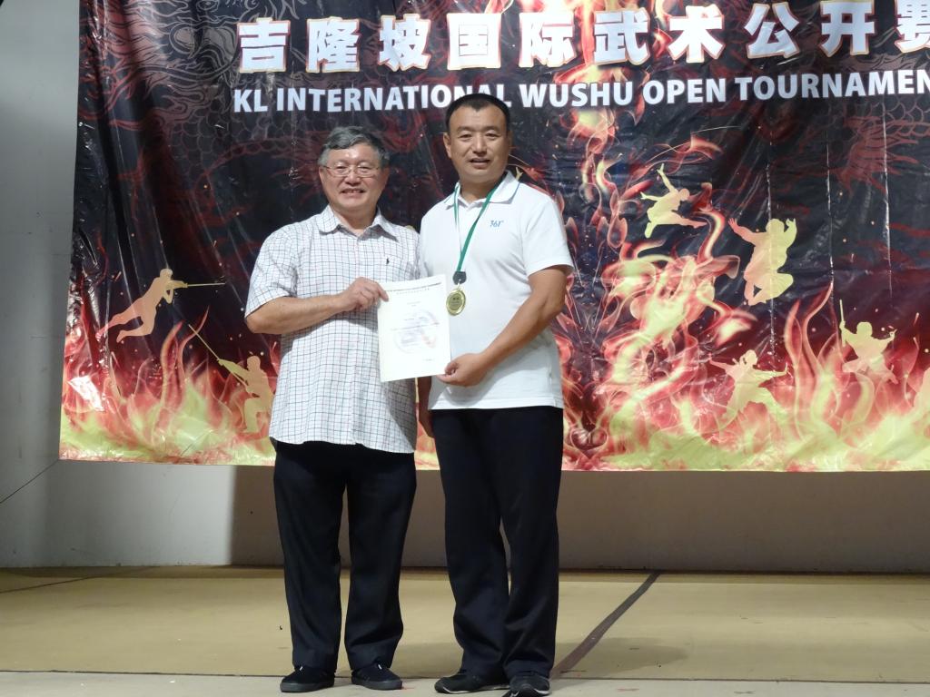 吉隆坡武术总会主席林仁灿先生为魏戎老师颁发奖状