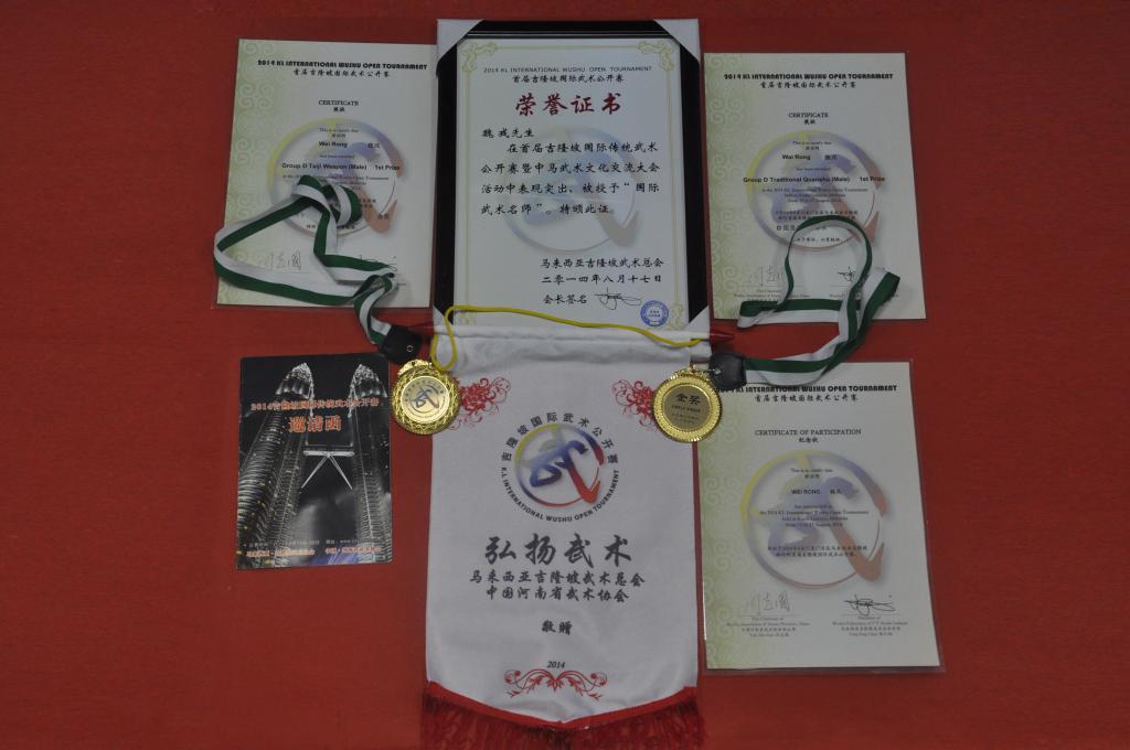 在日前结束的2014首届吉隆坡国际武术公开赛上,我院教师魏戎表现出色,一举夺得D组男子传统拳术和D组男子传统及竞赛太极器械两个项目的金奖,并被大赛授予“国际武术名师”荣誉称号,展现了我校教师的精神风貌,为新乡、为河南、为祖国赢得了荣誉。