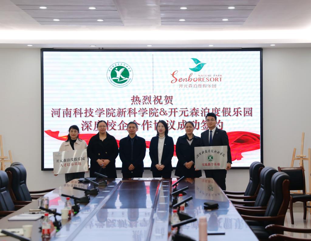 在隆重热烈的氛围中,合作双方共同签订协议并对“河南科技学院新科学院实践教学基地”和“开元森泊度假乐园人才培养基地”进行揭牌。本次校企合作签约暨揭牌仪式的成功举行,为校企双方进一步开展多层次、多形式、多领域的合作,实现校企资源的有机结合和优化配置,共同培养经济社会发展需要的人才提供了契机。下一步,双方将拓宽合作范围,实现优势互补、资源共享、互惠互利、共同发展,携手为应用型人才培养做出更多贡献。