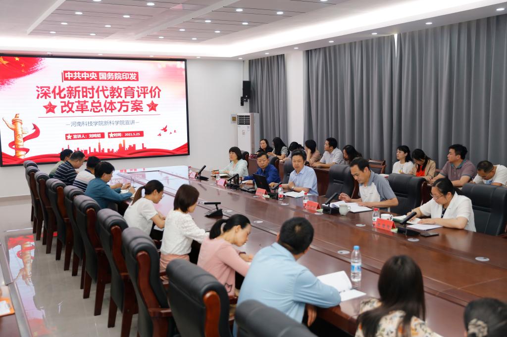 为深入学习贯彻习近平总书记关于深化新时代教育评价改革的重要批示指示精神,做好《深化新时代教育评价改革总体方案》的宣讲传达,深刻认识教育评价改革的重要意义。5月25日下午,院长刘鸣韬在综合实验楼第一会议室作《深化新时代教育评价改革总体方案》主题宣讲,在校院领导、中层干部、科室正职共计50余人聆听了宣讲报告。宣讲会由院党委书记张忠迪主持。