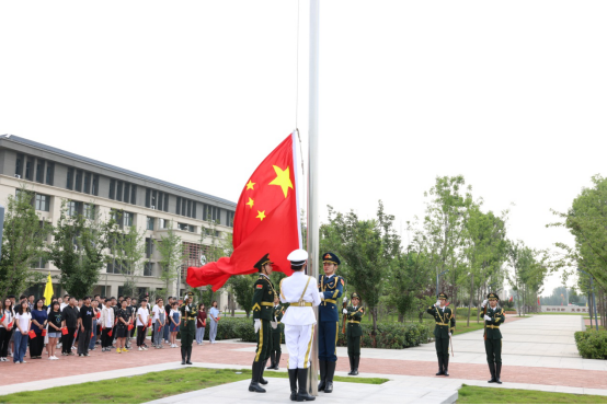 早7点01分,迎着初升的朝阳,升旗仪式正式开始,护旗手们英姿飒爽、昂首挺胸,迈着铿锵有力的步伐,护卫着五星红旗走向升旗台。伴随着雄壮的《义勇军进行曲》,鲜艳的五星红旗冉冉升起、高高飘扬。
