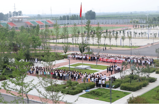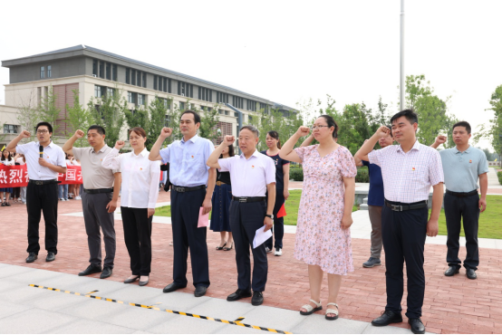 为热烈庆祝中国共产党成立100周年,7月1日,我院隆重举行“庆党百年 不忘初心”主题升旗仪式。院党委书记张忠迪,副书记王秀金、张慧辉,副院长赵瑞玲出席仪式,党政办、组宣部、学工部、团委、思政部等部门负责同志、各系党总支书记、学生党员等共400余人参加。仪式由党委副书记王秀金同志主持。