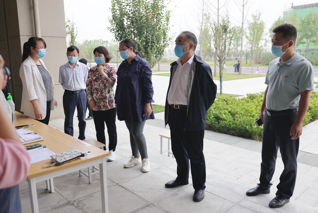 9月24日,我校第一批学生返校报到,校领导张现周、张传来、张宝剑、姚素梅、赵瑞玲,在党政办公室、组宣部、学工部等相关部门负责人陪同下深入学生报到现场,检查指导学生返校报到工作,看望返校学子,慰问一线工作人员。