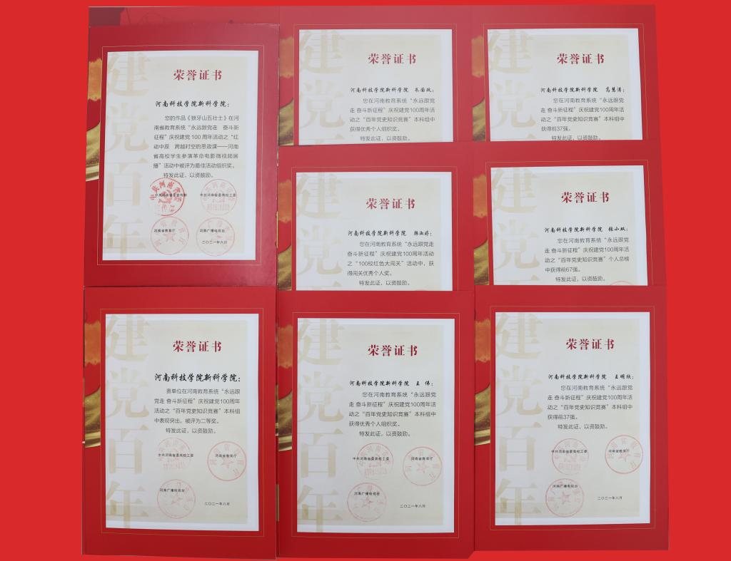 近日,河南省教育厅公布了全省教育系统“永远跟党走 奋斗新征程”庆祝中国共产党成立100周年系列活动的评选结果。我校及6名师生在活动中荣获省级荣誉。