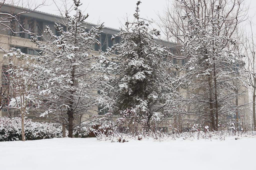 2022年第一场雪悄然而至,一夜之间学校就换上了银色新装。皑皑白雪、雪树银花将整个校园装点的分外美丽,处处充满了诗情画意……