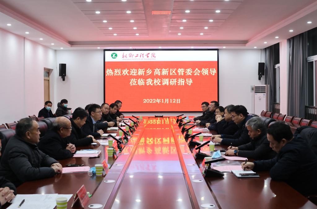1月12日下午,新乡市高新区党工委书记翟洪凯、管委会主任刘彦斌一行7人在朗公庙镇党委书记史兴、镇长王飞的陪同下莅临我校调研指导。双方在综合实验楼第一会议室举行座谈会。我校董事长赵建永、校长刘鸣韬、监事会主席周铁项、副校长张现周、新永基集团副总裁兼南区事业部总经理潘丰勇等一起参加座谈。