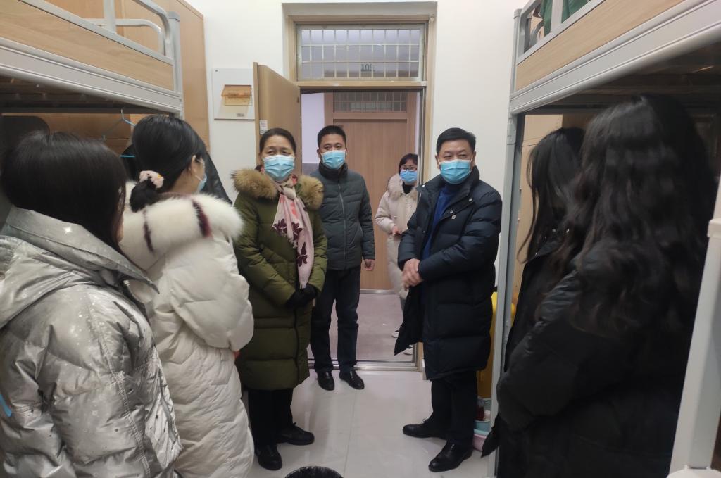 张慧辉、张永福一行来到学生宿舍,与她们亲切交谈,关心询问假期以来的学习生活情况以及近期安排。两位领导叮嘱留校同学要常与家人联系,定期汇报自己在校的学习和生活情况,一定要让家长放心、父母安心;要合理利用寒假假期努力给自己充电,并适当开展体育锻炼,注意劳逸结合;同时要遵守学校要求,做好个人防护,注意人身和财产安全,防止网络电信诈骗,在学校度过一段平安、温馨、愉快的寒假假期。