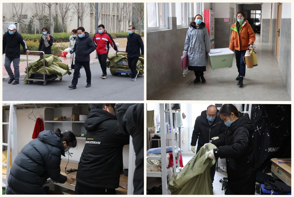 时间紧、任务重,面对要在48小时内腾空1000余间宿舍的工作任务,我校教师和部分在新学生高度重视、积极响应,义无反顾冲在一线,不分昼夜、加班加点,在人员紧张情况下,有些老师甚至把自己孩子带到学校承担任务,在营运车辆停运情况下,部分在新学生自驾、骑行自愿来校帮忙;300余名师生员工分工明确、齐心协力将被征用宿舍的物品,整齐打包、做好标识、密封处理、不留死角,在规定时间内完成了任务,为早日接收隔离群众争取了时间。为保质保量完成任务,很多同志甚至忙到深夜,累到手脚抽筋、身体生病。
