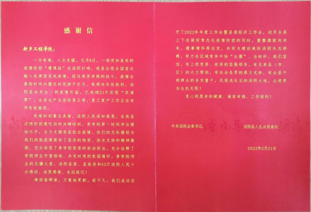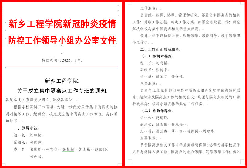 春节前夕,我省遭受德尔塔和奥密克戎两种病毒毒株叠加侵袭,疫情来势汹汹,特别是新乡市周边疫情复杂严峻,为防止疫情蔓延扩散,省委、省政府综合研判、统筹谋划、果断决策,本着“宁可备而无用,不可用而无备”的原则,未雨绸缪,提前准备,在包括我校在内的6所驻新高校建立隔离点,帮助受疫情影响的临近地市渡过难关。
