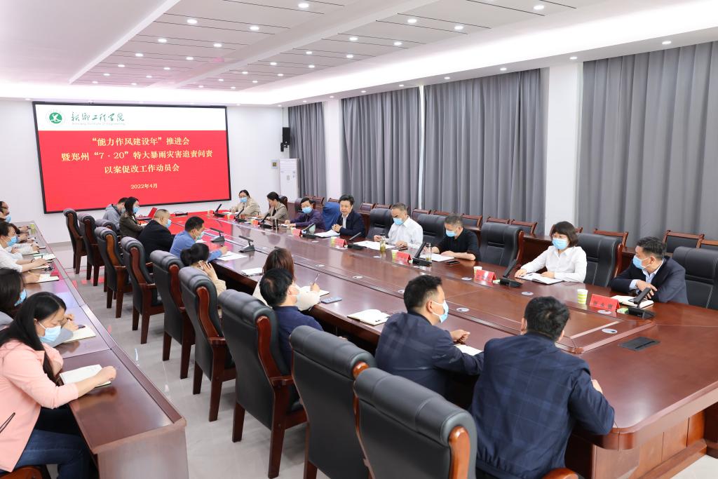 4月12日下午,我校在综合实验楼201会议室召开“能力作风建设年”推进会暨郑州“7•20”特大暴雨灾害追责问责以案促改工作部署会。全体校领导、相关职能部门负责人、各党总支(直属党支部)副书记参加会议。会议由副校长张现周主持。