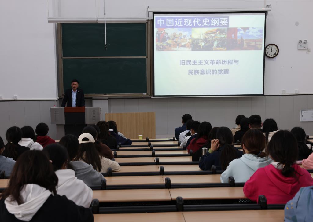 张永福以“旧民主主义革命历程与民族意识的觉醒”为题,从“了解旧民主主义革命”、“认识反侵略战争的失败及原因”及“了解民族意识觉醒在民族复兴中的重要意义”等三方面展开讲授,带领学生重温学习了旧民主主义革命运动与反侵略战争的历史进程,详细阐述和深入分析了民族意识觉醒对近代中国发展的重要作用和影响。