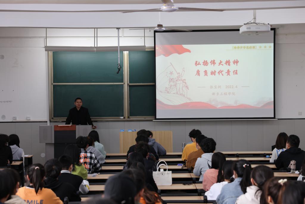 4月16日下午,我校副校长张宝剑在教学楼1-309教室为食品工程学院学生代表讲授思政课。