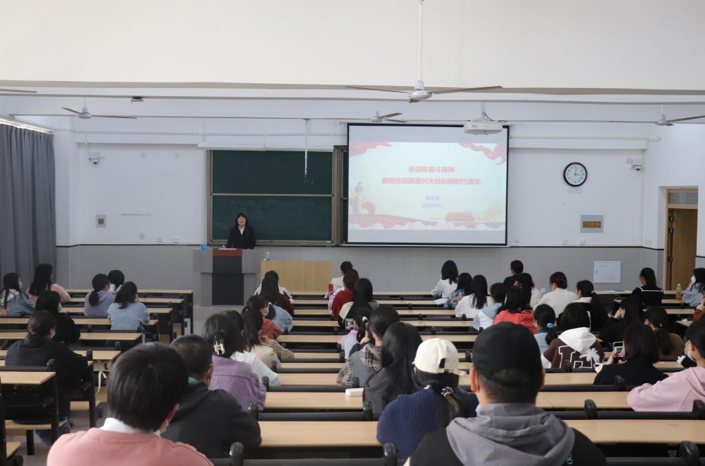 4月16日下午,我校副校长姚素梅在教学楼1-307教室为文法学院2021级、2020级学生讲授思政课。