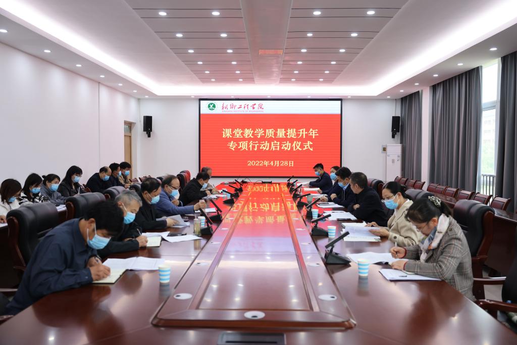 4月28日上午,我校在综合实验楼201会议室举行“课堂教学质量提升年专项行动”启动仪式。校长刘鸣韬,副校长张宝剑、赵瑞玲,校党委副书记张慧辉,教务处、人事处、学生处等相关部门负责人,各学院院长、教学副院长等参加启动仪式。仪式由副校长张宝剑主持。
