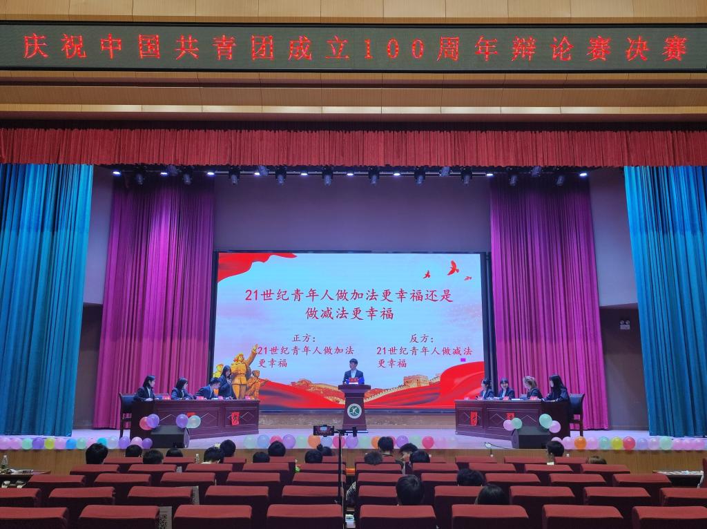 为庆祝中国共青团成立100周年,营造积极向上、昂扬奋进的校园文化氛围,4月28日晚,庆祝中国共青团成立100周年辩论赛决赛在教学楼2报告厅隆重举行。经过初赛复赛的层层选拔,共有四支队伍晋级决赛。