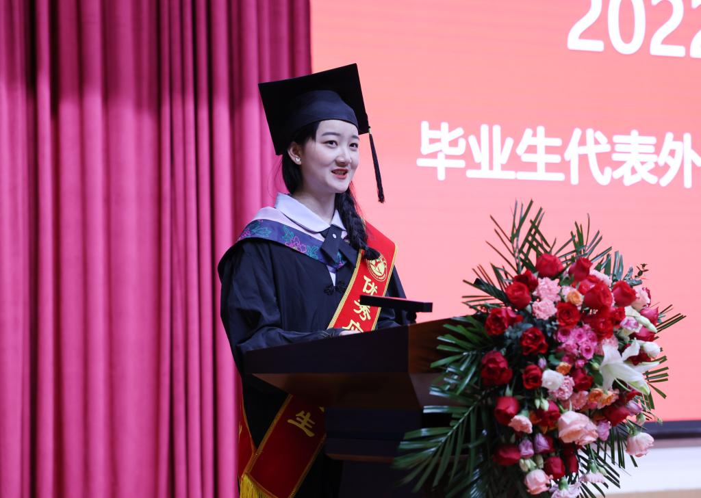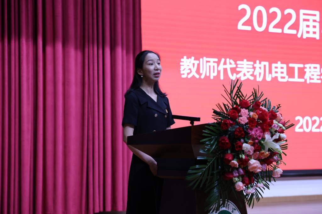 外国语学院李孟珠代表毕业生分享了求学中的成长奋斗历程,表达了对母校悉心栽培的诚挚感谢与衷心祝福。教师代表机电工程学院赵宁宁为毕业生送上祝福和嘱托,希望同学们坚守信念与梦想,永怀一颗执著追求之心,执著真理、执著信念,追求卓越,追求初心梦想。