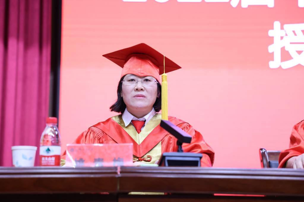 副校长姚素梅宣读《关于授予2022届毕业生许世行等2725位同学学士学位的决定》