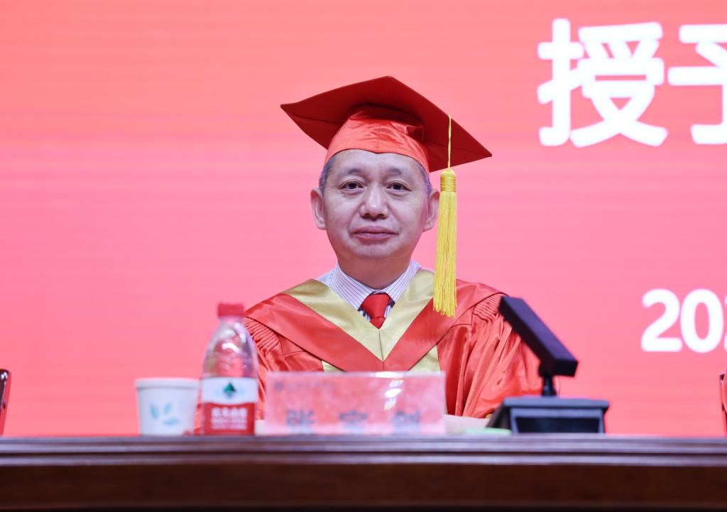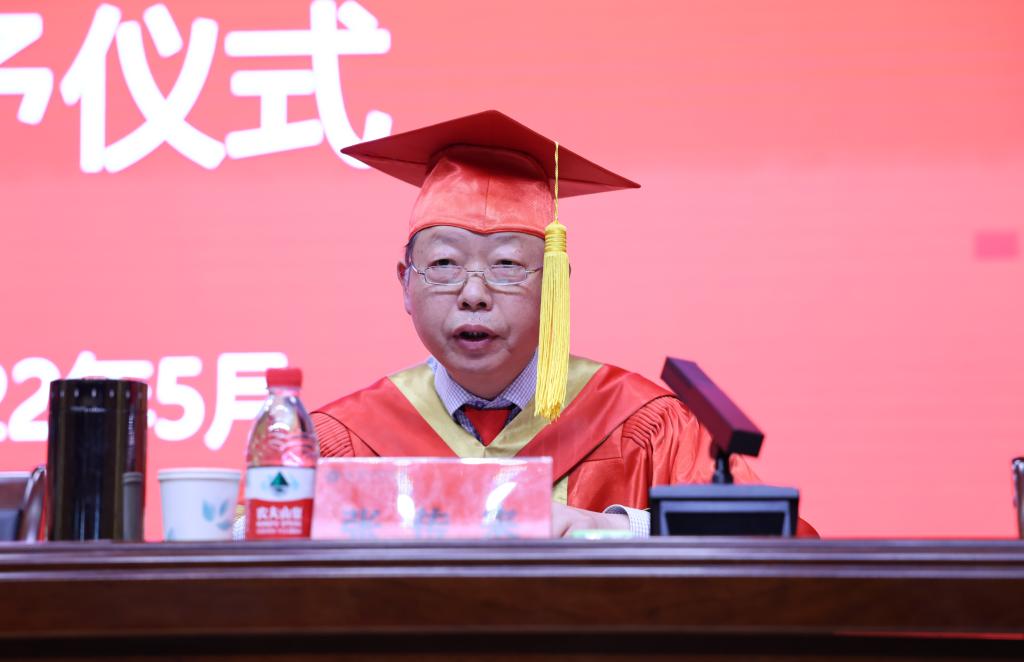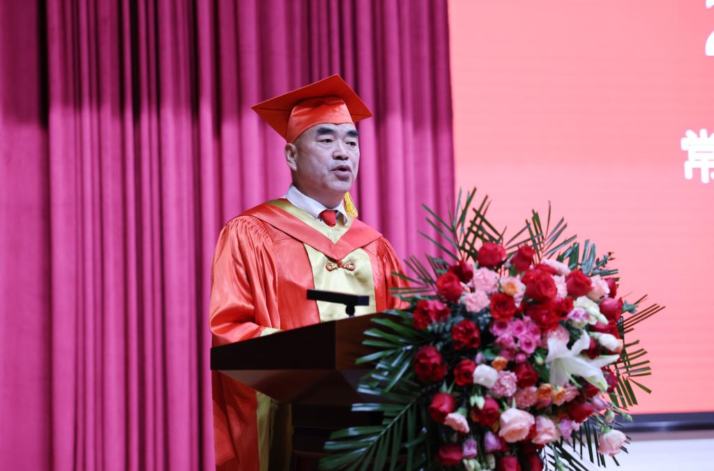 常务副校长张现周以《奋楫笃行,臻于至善》为题作毕业致辞。他向圆满完成学业的2022届毕业生表示祝贺,对即将踏上征程的学子们送上嘱托与祝福,并提出四点希望:一是希望同学们奋楫扬帆,用奋斗点亮青春底色;二是希望同学们笃行不怠,以实践检验理论成果;三是希望同学们推陈出新,用创新推动时代变革;四是希望同学们追求卓越,以至善实现人生价值。他勉励同学们要以奋斗之姿态,踏笃实之步伐,创崭新之局面,达至善之境界。