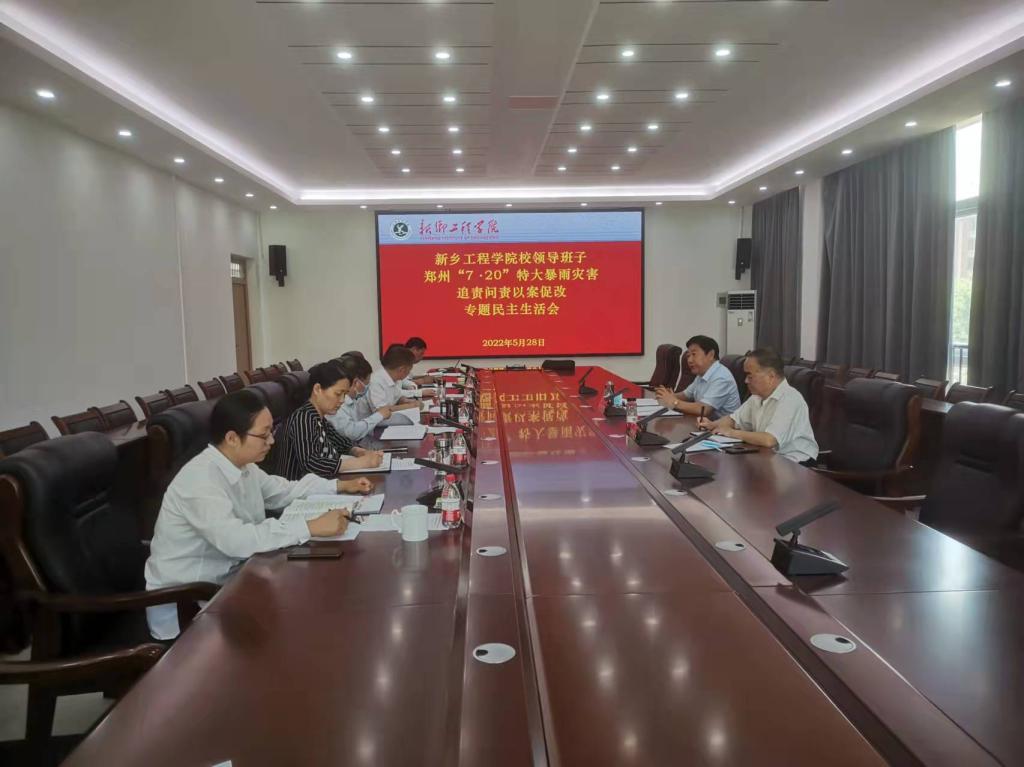 5月28日下午,我校领导班子在综合实验楼201会议室召开“7·20”特大暴雨灾害追责问责案件以案促改专题民主生活会。全体校领导出席会议,会议由校党委书记陈广文主持。