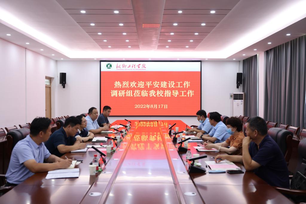 8月17日下午,新乡市政法委副书记栗全义、新乡市教育局副局长张伟萍等一行4人莅临我校调研平安校园建设工作。副校长赵瑞玲热情接待调研组一行并在综合实验楼201会议室举行座谈会,稳定办、宣传部、学工部、保卫部等负责人参加座谈会。