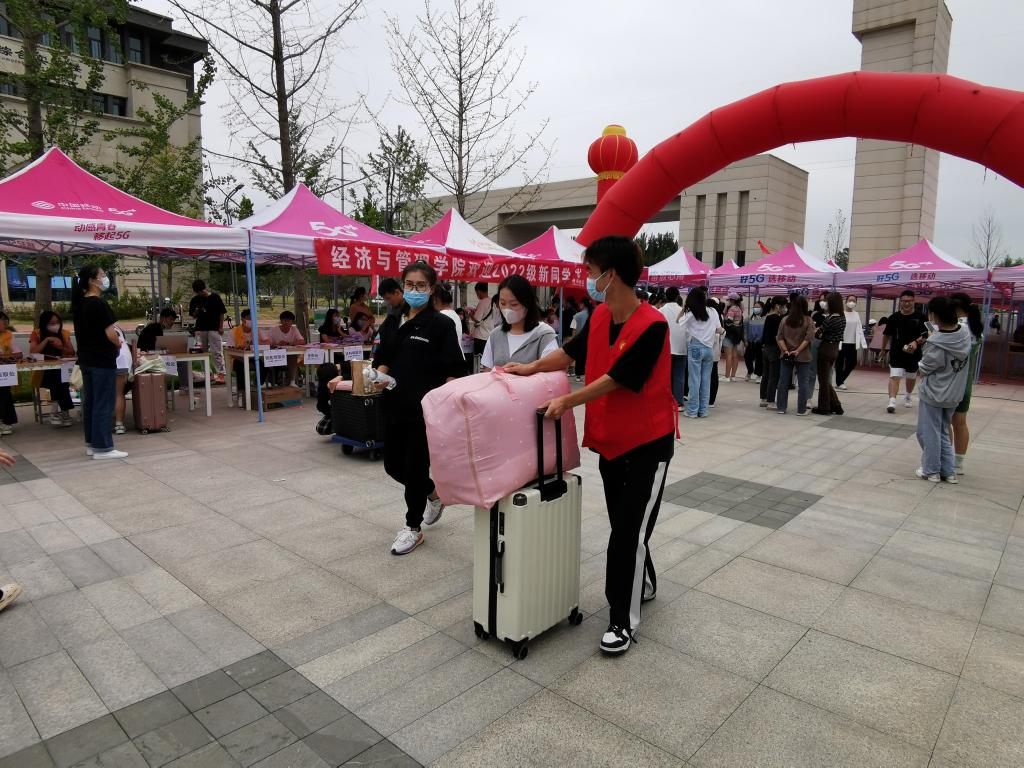 迎新现场井然有序,温暖周到。志愿者们面带笑容,全程引导新生从报到点到宿舍,完成报到流程。各迎新点工作人员各司其职,快速而有序地为新生办理入学报到手续。各种人性化服务举措让新生们倍感温暖。