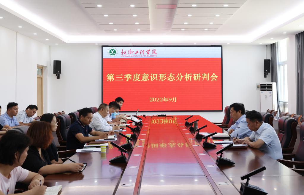 9月16日上午,我校在综合实验楼201会议室召开2022年第三季度意识形态分析研判会议。校党委书记陈广文、副校长张永福出席会议,相关职能部门负责人、各学院党总支副书记参加会议。