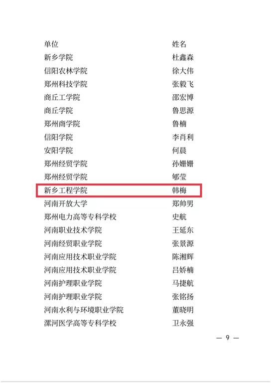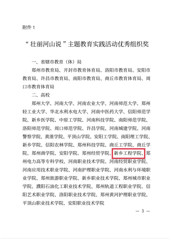 近日,中共河南省委教育工委、河南省教育厅办公室下发《关于公布“壮丽河山说”主题教育实践活动获奖结果的通知》,我校荣获“优秀组织奖”,韩梅老师荣获“先进个人奖”,姜卓杭、冯甜甜、王瑞芳、丁丽娟、李俊逸、彭静云6名同学荣获“人气之星奖”。