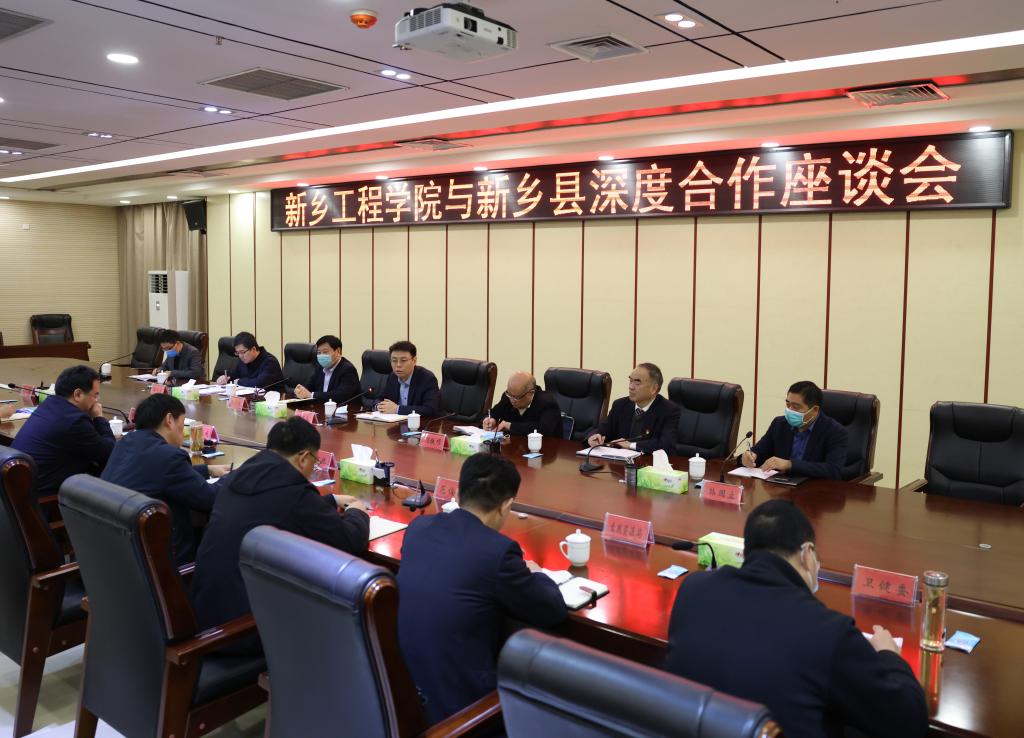 11月4日下午,我校与新乡县就校地深度合作举行工作座谈。董事长赵建永、党委书记陈广文、监事会主席周铁项、校长张现周与新乡县委书记祝显成、县长李绍青、副县长许万银、于智、范俊杰等共同出席会议。