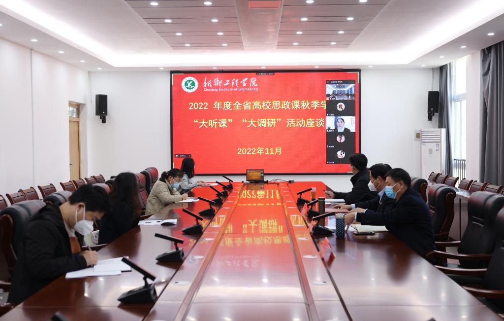 根据河南省委教育工委、河南省教育厅《关于开展2022年度全省高校思政课秋季学期“大听课”“大调研”活动的通知》安排,11月25日上午,第七调研组以线上方式随机听取了我校《习近平新时代中国特色社会主义思想概论》《马克思主义基本原理》两门课程。听课结束后,以腾讯会议方式召开了“大听课”“大调研”活动座谈会。校党委书记陈广文、副校长张永福、赵一鹏、党委宣传部、教务处相关负责同志、马克思主义学院全体教师及学生代表参加了座谈会。座谈会由张永福主持。