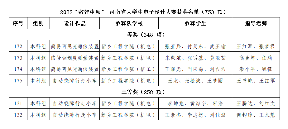 近日,2022“数智中原”河南省大学生电子设计大赛结果揭晓,我校机电工程学院和信息工程学院在大赛中荣获二等奖4项,三等奖2项。