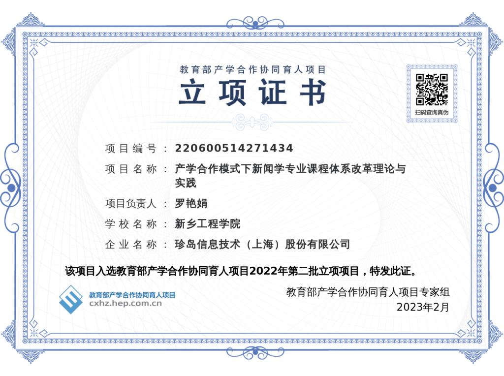 近日,教育部高等教育司公布《2022年第二批产学合作协同育人项目立项名单的通知》,由我校文法学院副院长罗艳娟与珍岛信息技术(上海)股份有限公司组织的项目《产学合作模式下新闻学专业课程体系改革理论与实践》喜获立项。