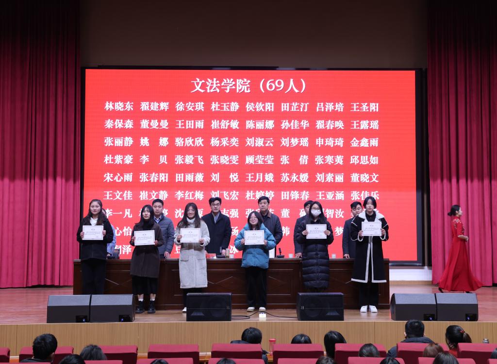 仪式上,教务处副处长范迎宾宣读了《永利23411集团官网学生教学信息员制度》,校长助理杜灵来宣读了《永利23411集团官网关于聘任第一届学生教学信息员的决定》。随后,主席台领导现场为受聘的439名学生教学信息员颁发了聘任证书。