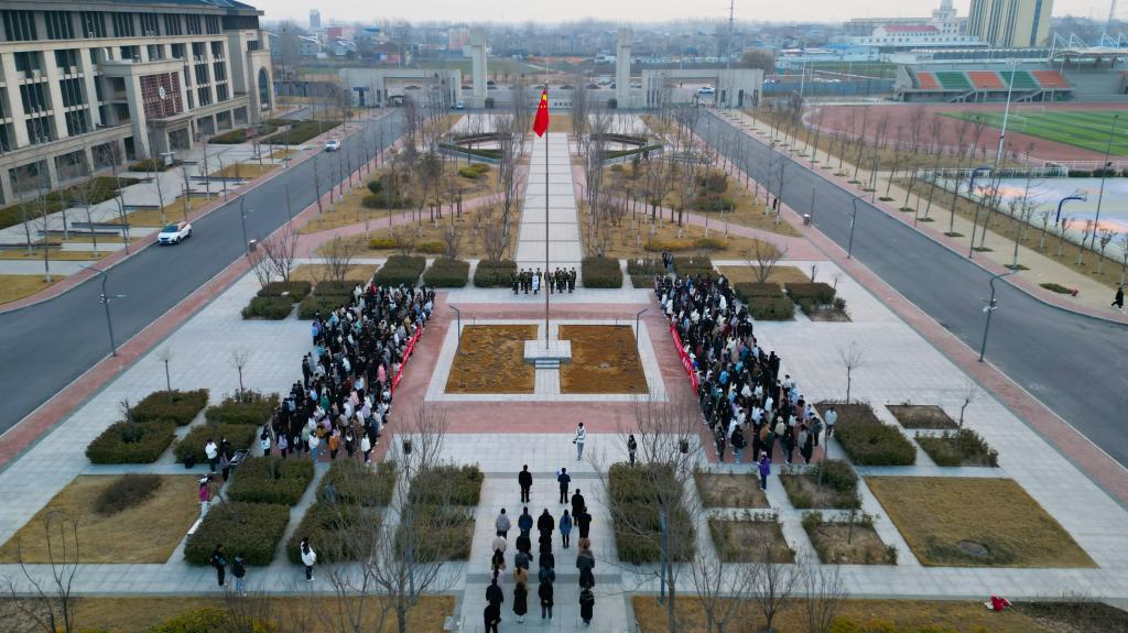 为进一步加强爱国主义教育,激励全校师生振奋精神,以积极昂扬的姿态开启新学期的新征程,2月27日早7点,我校在旗帜广场举行“开学思政第一课”暨新学期升旗仪式。校党委副书记、副校长张永福、纪委书记、副校长赵瑞玲、校长助理杜灵来出席仪式。党政办、党委宣传部、党委学工部、团委、马克思主义学院等部门负责人以及各二级学院党委(党总支)副书记、教师代表、学生代表等400余人参加仪式。仪式由校长助理杜灵来主持。