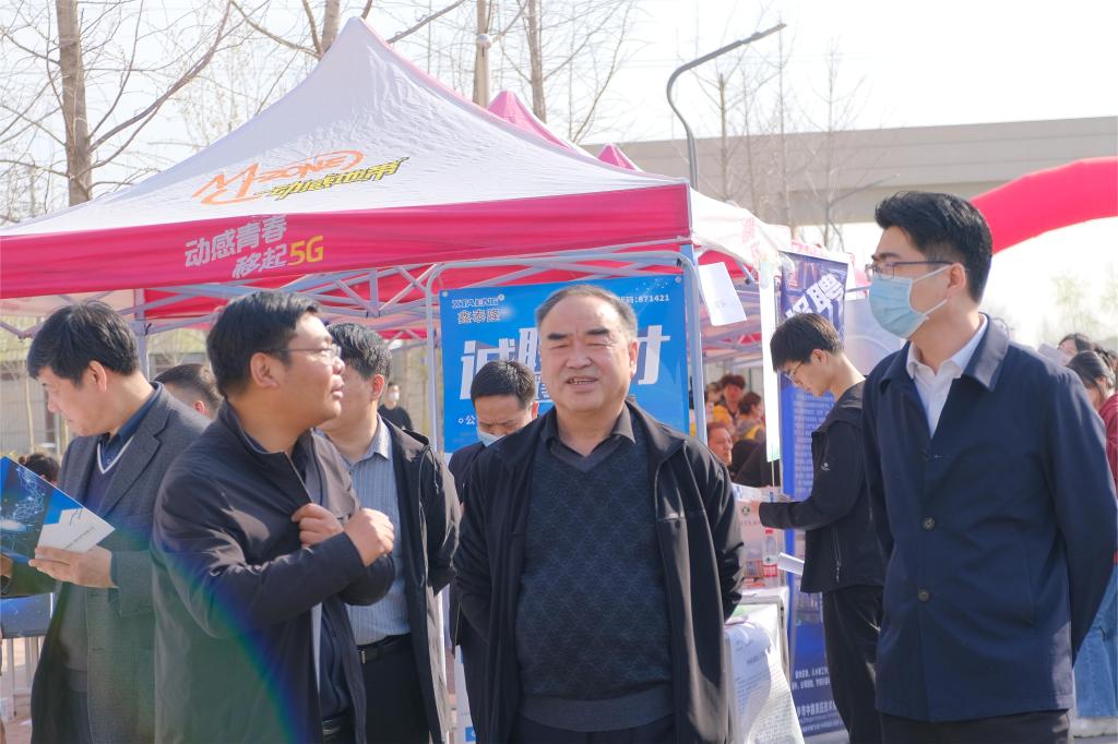 学校高度重视本次校园双选会,当天上午,校长张现周、校长助理杜灵来、高新区组织和人事局副局长孙振华等深入招聘会现场,对用人单位招聘计划、岗位要求及学生的求职意向等进行现场调研。
