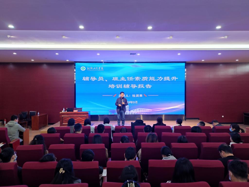 为进一步深化辅导员、班主任对学生工作的认识与思考,坚守职业初心与使命,3月13日下午,校长助理杜灵来在学院楼报告厅为辅导员素质能力提升培训班作辅导报告,报告会由学生处负责人主持。