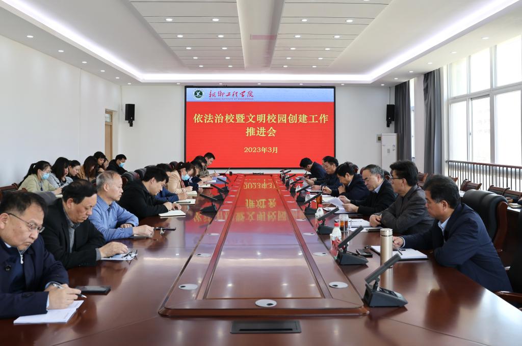 3月28日下午,我校在综合实验楼201会议室举行依法治校暨文明校园创建工作推进会。校党委书记陈广文出席会议并讲话。会议由校长张现周主持。