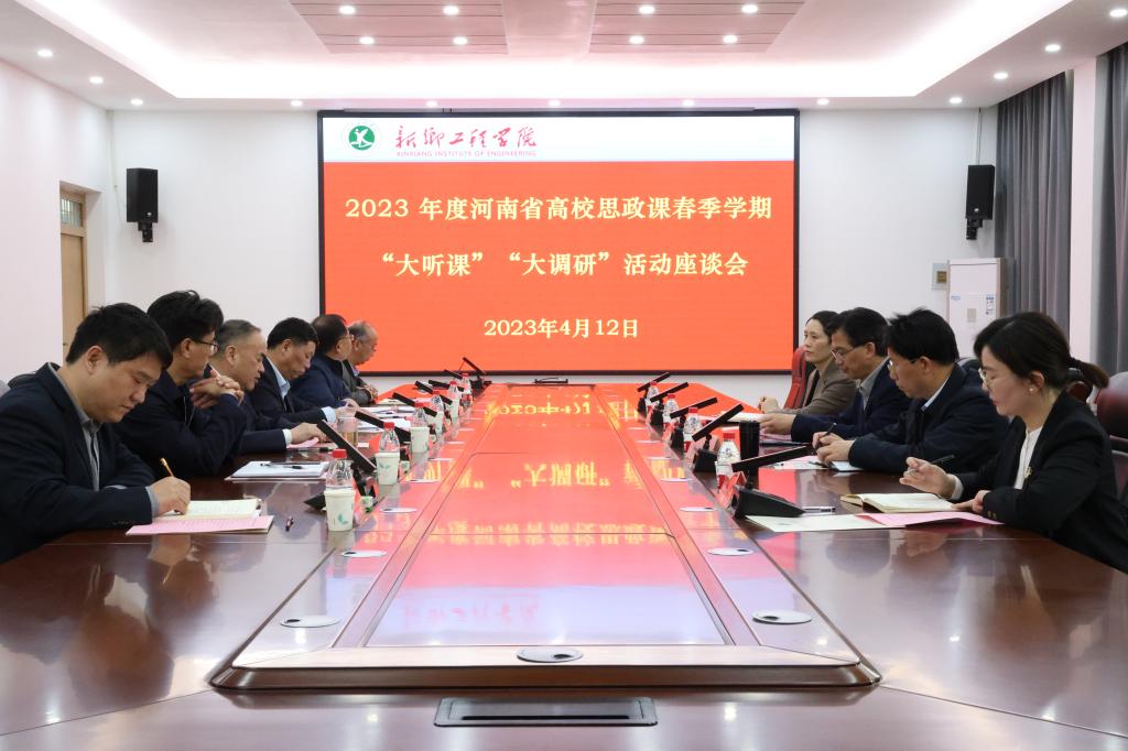 为深入学习贯彻党的二十大精神和习总书记关于思政课建设的重要论述,指导和规范高校思政课教育教学,扎实推进河南高校思政课教育教学质量提升,根据省委教育工委、省教育厅安排,4月12日下午,以南阳农业职业学院校长孔国庆为组长的第七调研组莅临我校,开展2023年度全省高校春季学期思政课“大听课 大调研”活动。调研活动的座谈会在综合实验楼201召开,校长张现周、副书记张永福、副校长赵一鹏出席了座谈会,党委宣传部、教务处、学生处负责同志,马克思主义学院的班子成员和部分思政课教师参加座谈。座谈会由副书记张永福主持。
