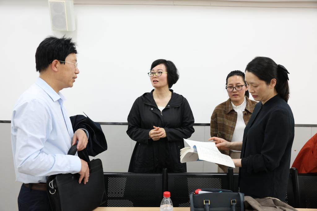 马克思主义学院院长郭勇汇报了我校思政课建设情况、“习近平新时代中国特色社会主义思想概论”课程开设情况、《教学要点及参考材料》使用情况等,回答了专家组关心的问题。与会教师代表蒋红哲、贺月静、陈亚敏和怀艳杰分别提出有关思政课教学的疑惑,专家组一一给出了指导性建议。