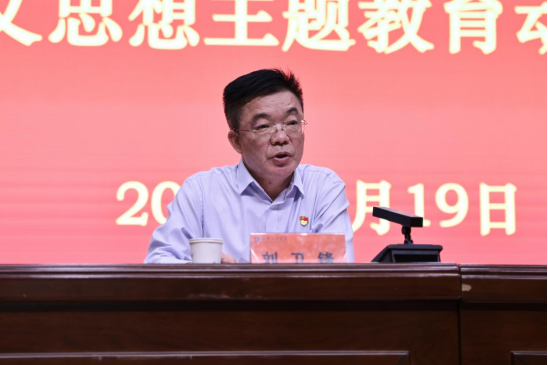 刘卫锋介绍了指导组的职责任务,对深刻认识开展这次主题教育的重大意义、根本任务、总体要求和具体目标,以及严格落实主题教育的各项任务作出指导、提出要求:一是要在旗帜鲜明讲政治中推动主题教育走深走实。把开展主题教育作为重大政治任务,深刻领悟“两个确立”的决定性意义,坚持不懈地用习近平新时代中国特色社会主义思想凝心铸魂,增强“四个意识”,坚定“四个自信”、做到“两个维护”,切实增强思想自觉、政治自觉、行动自觉。二是要在把牢总要求中推动主题教育走深走实。牢牢把握主题教育“十二字”总要求,着力学思想、着力强党性、着力重实践、着力建新功。三是要在紧扣根本任务中推动主题教育走深走实。把深入学习贯彻习近平新时代中国特色社会主义思想这一根本任务作为主线,一切工作安排、一切推进措施、一切工作要求,都要围绕这一主线展开,紧扣这一主线推进,让习近平新时代中国特色社会主义思想展现出更加强大的真理力量和实践伟力。四是要在围绕具体目标中推动主题教育走深走实。坚持目标导向和问题导向相结合,以具体目标为牵引,以解决问题为抓手,有的放矢、精准发力,推动各项任务落地落实。五是要在突出重点措施中推动主题教育走深走实。聚焦“理论学习、调查研究、推动发展、检视整改、建章立制”五项重点措施,把学和做结合起来、把查和改贯通起来、把破和立统一起来,既要突出重点、抓住关键,又要统筹兼顾、整体推进,努力把每项工作做扎实、做到位。
