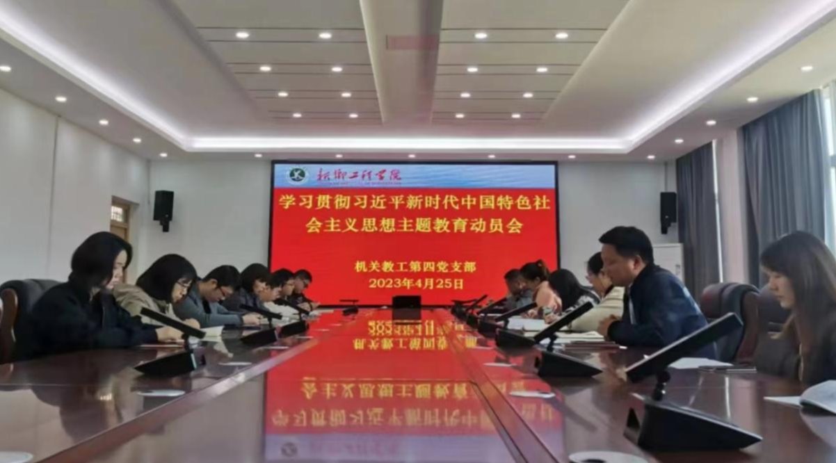 4月25日上午,机关教工第四党支部在综合实验楼201会议室召开学习贯彻习近平新时代中国特色社会主义思想主题教育动员会,支部全体党员参加会议,会议由支部书记樊玉立同志主持。