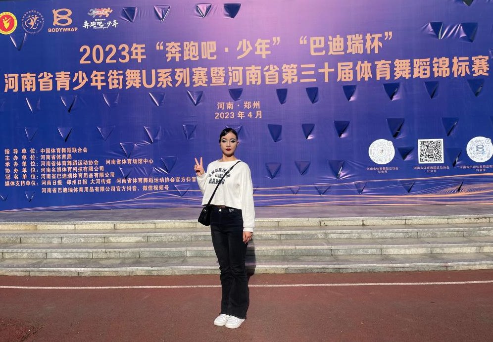 近日,由河南省体育局主办的2023年“奔跑吧·少年”“巴迪瑞杯”河南省青少年街舞U系列赛暨河南省第三十届体育舞蹈锦标赛在郑州落下帷幕。在学校高度重视和大力支持下,我校舞蹈队参加了高校艺术创编集体舞组和大学生拉丁舞单人A组的比赛,并取得了优异战绩。