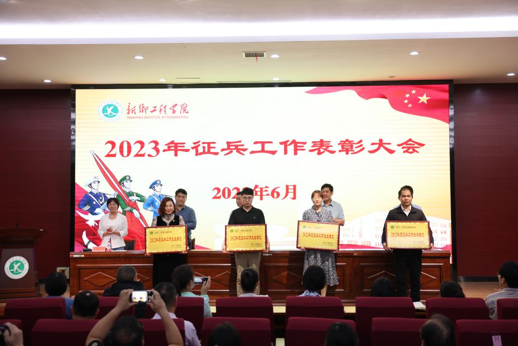 会上,杜灵来宣读了《关于表彰2022年度征兵工作先进集体和个人的决定》,授予经济与管理学院、文法学院、生物工程学院和信息工程学院4个学院“征兵工作先进单位”荣誉称号,授予张震、晋跃栋、贾路路、徐敏、郭中甲、崔征、焦红艳、魏淑敏8名辅导员“征兵工作先进个人”荣誉称号。与会领导为获奖集体和个人颁奖。征兵工作先进单位代表信息工程学院党委副书记焦红艳作了经验分享。