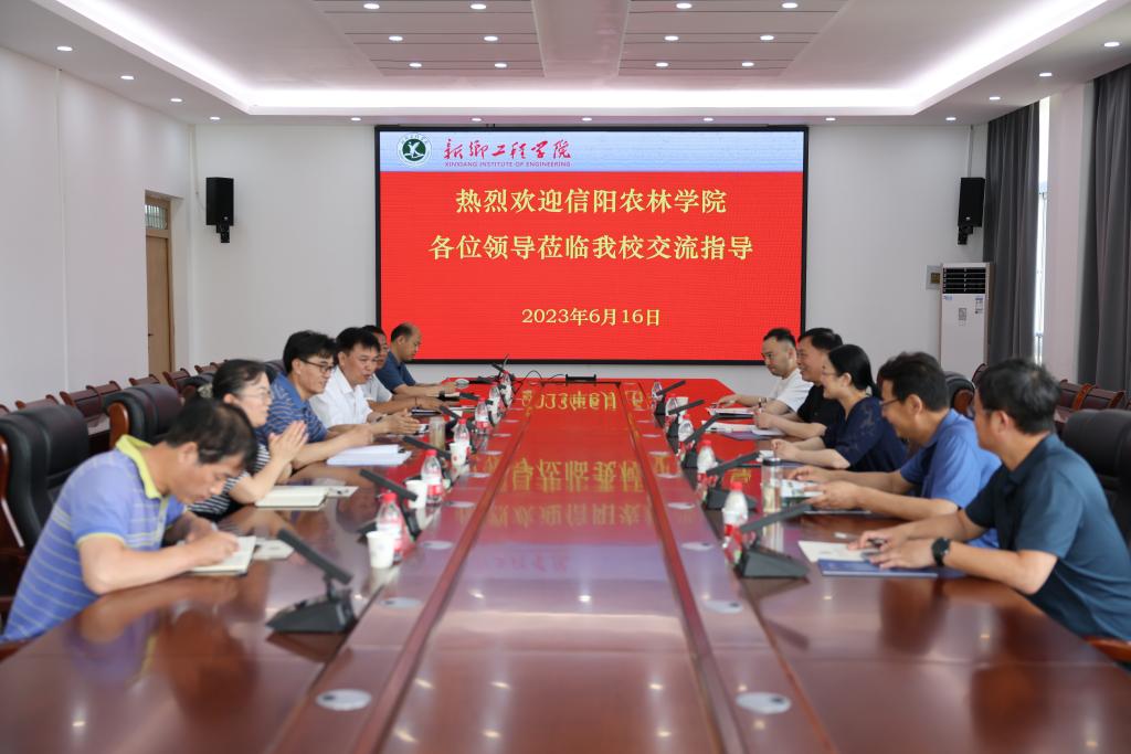 赵一鹏对张淮一行来访表示热烈欢迎,并介绍了我校基本概况、办学特色、专业建设及学校准备启动本科合格教学评估情况。张淮简要介绍了信阳农林学院的基本情况及教学质量监控评价工作情况,王学增介绍了本科教学合格评估的情况。