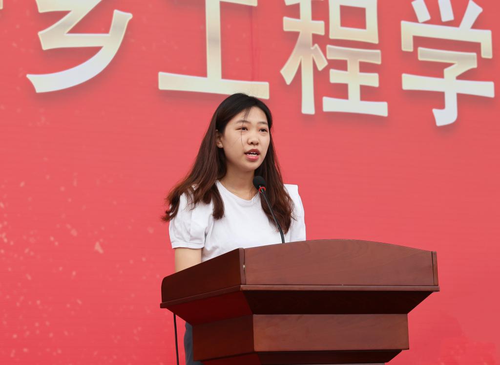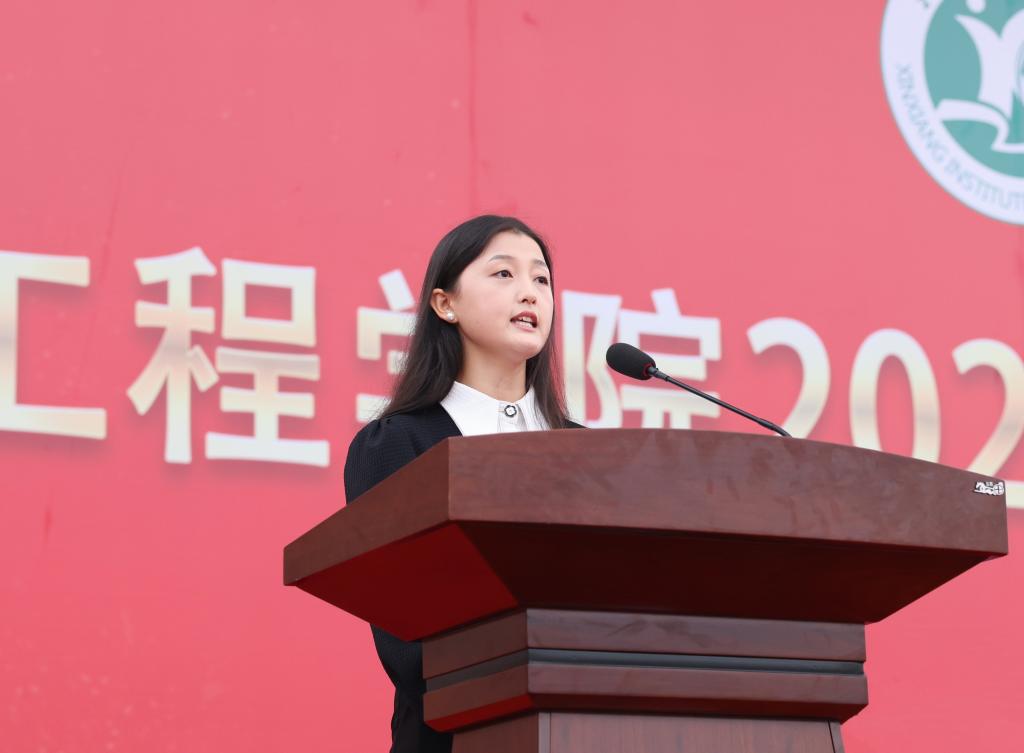 外国语学院副教授张帆作为教师代表发言,表达了对新生的欢迎与期望,希望学生转变思维,早日适应大学生活。郝美娟、董淑薇作为高年级学生代表发言,分享自身学习经验。新生代表王龙念、徐聪发言,勉励新同学们脚踏实地、自强不息、勇攀高峰、成就未来。