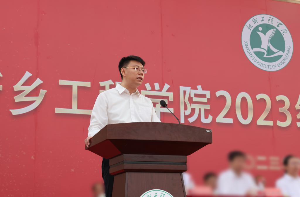 云天收夏色,木叶动秋声。9月11日上午,我校2023级本科新生开学典礼先后在南校区和北校区隆重举行。校董事长赵建永、党委书记陈广文、监事会主席周铁项、校长张现周、党委副书记张永福、副校长赵瑞玲、李左峰、张彦军、校长助理李帅军、杜灵来及各职能部门负责人、各二级学院负责人出席典礼并在主席台就座。教师、学生代表、全体新生辅导员以及2023级本科生参加典礼。典礼由副校长赵一鹏主持。
