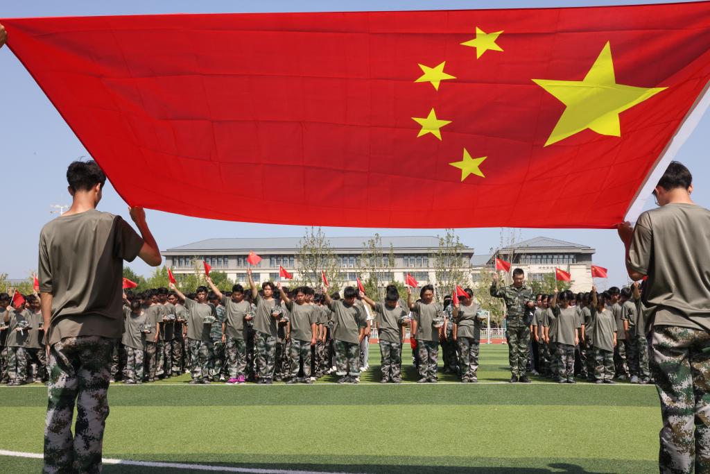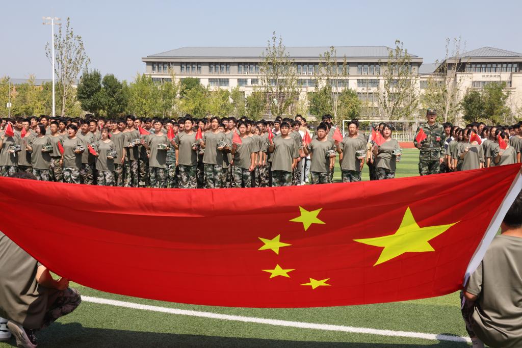 9月18日,我校在2023级军训新生中开展了纪念“九一八”事变主题教育活动。正在军训的大一新生们在教官的指挥下,在训练场上排列出“9·18”字样队形。随后整齐列队,脱帽肃立,鞠躬默哀。在军训教官的领誓下,大家面向国旗郑重宣誓:“勿忘国耻,铭记历史,砥砺前行,振兴中华”,铮铮誓言激励青年学子们厚植爱国主义情怀,勿忘国殇、奋发图强。