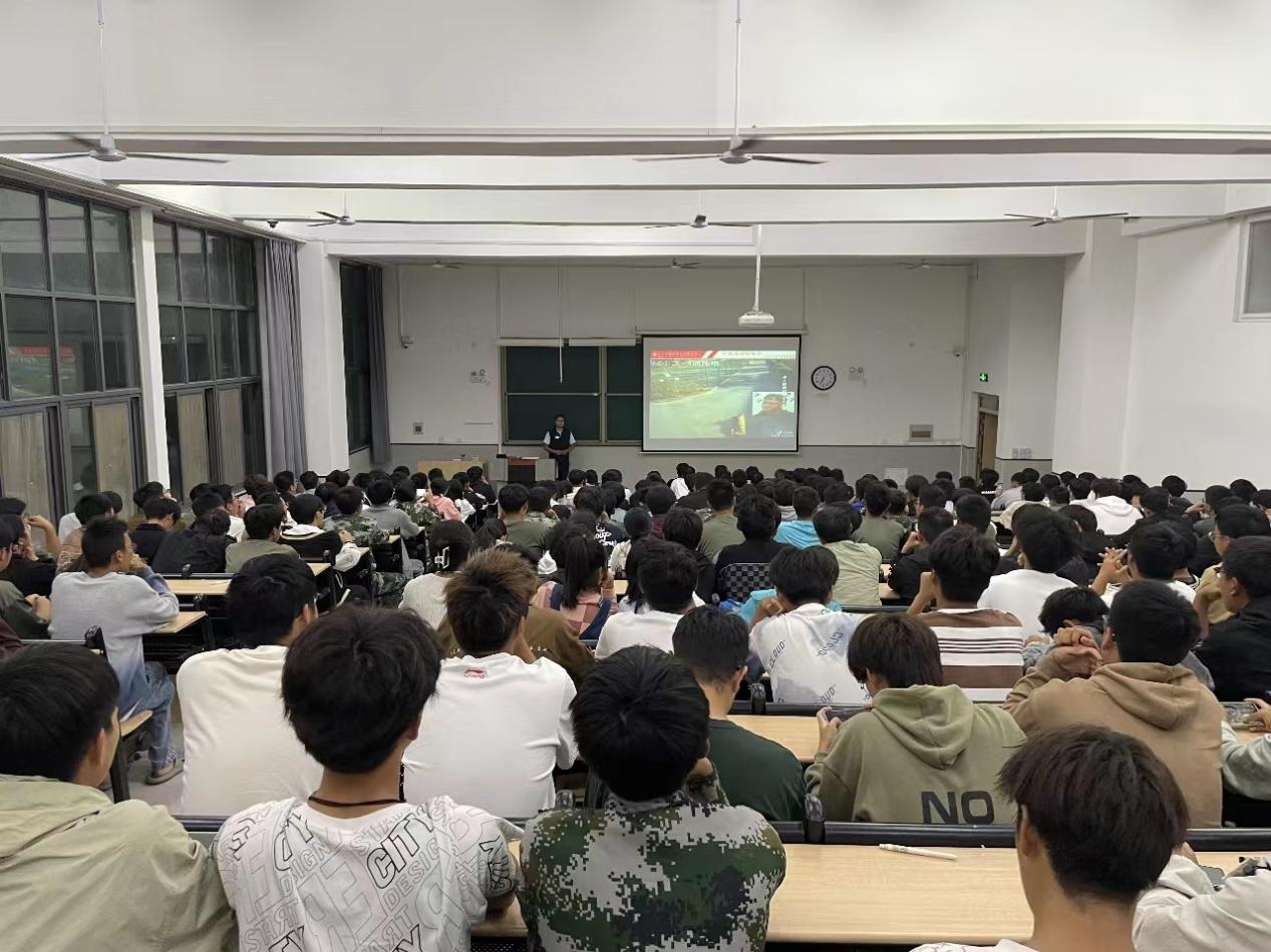 主讲人从什么是火灾、火灾的危害、防火灭火常识、校园火灾的类型及近期发生的火灾案例分析出发,以丰富的经验和生动的语言,向大家讲解了有关消防安全方面的知识,通过短视频为大家展示了火场中的一幅幅震撼人心的画面,讲述了在火场中如何疏散人员及逃生自救的方式方法,让学生深刻认识到了火灾的严重性和在火场中如何利用好消防工具扑救初期火灾的常识。最后,正值“双节”来临之际,两位教官再次提醒各位同学们,不但要做好消防安全防范,还要做好交通出行安全、防范电信网络诈骗、食品安全等。