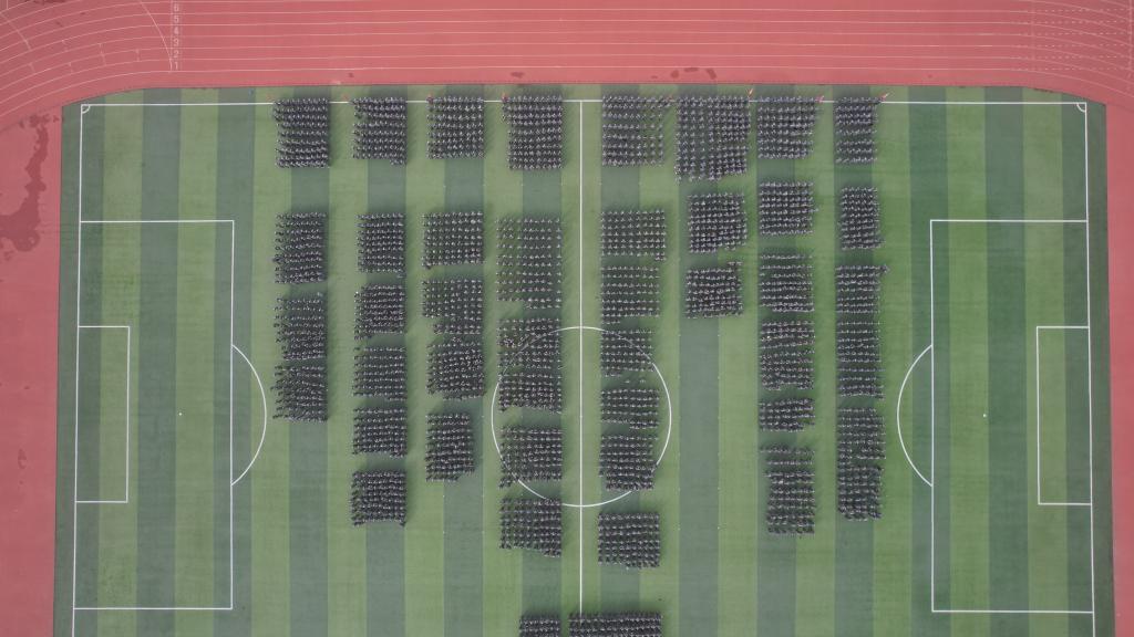 伴随着国歌雄壮激昂的旋律,鲜艳的五星红旗冉冉升起,大会正式拉开序幕。在激昂的旋律中,8个营队4200余名军训新生,迈着整齐的步伐依次通过主席台接受检阅,他们动作协调一致,步伐坚定有力,口号铿锵响亮,精神抖擞、意气风发,展示着训练的累累硕果,赢得了现场的阵阵掌声。